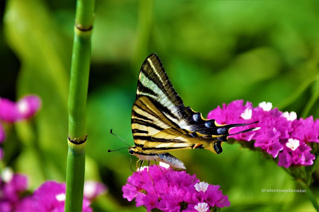 Nunca o quintal recebeu tantas borboletas como este ano. Se tivermos as flores certas, elas aparecem todos os dias e é fácil fotografá-las. O maior desafio foi a borboleta na ponta do dedo da mão esquerda e a máquina fotográfica na mão direita. Muito peso e sem poder focar convenientemente, não está perfeita, contudo, não podia deixar de partilhar este primeiro contacto com estas delicadas belezas que tanto nos fascinam.